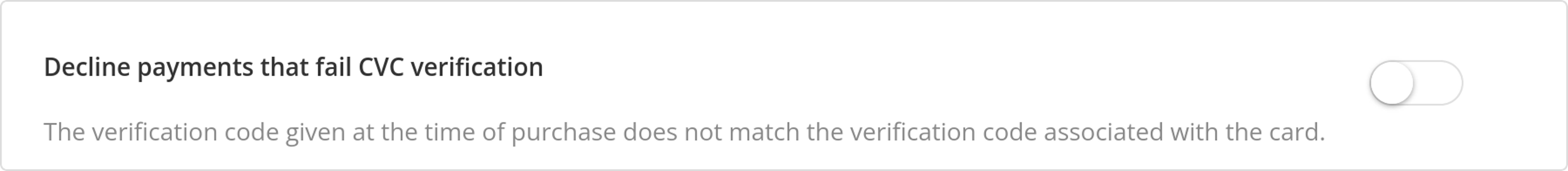 To activate or deactivate specific fraud protection features, find the corresponding checkboxes or toggle switches for each feature. These features may include options such as “Decline payments that fail AVS Postal Code verification” and “Decline payments that fail CVC verification.”