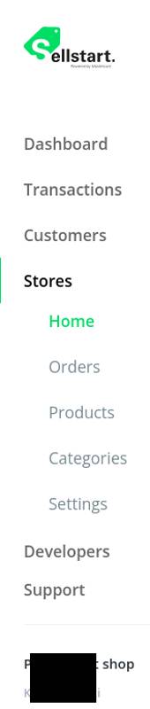You will then see a drop-down menu with orders, products, categories, and your Store settings.