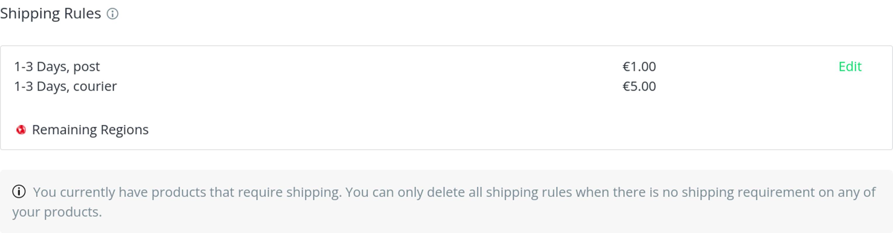 Define shipping rules, shipping methods, and any additional fees that may apply, simply by clicking edit.